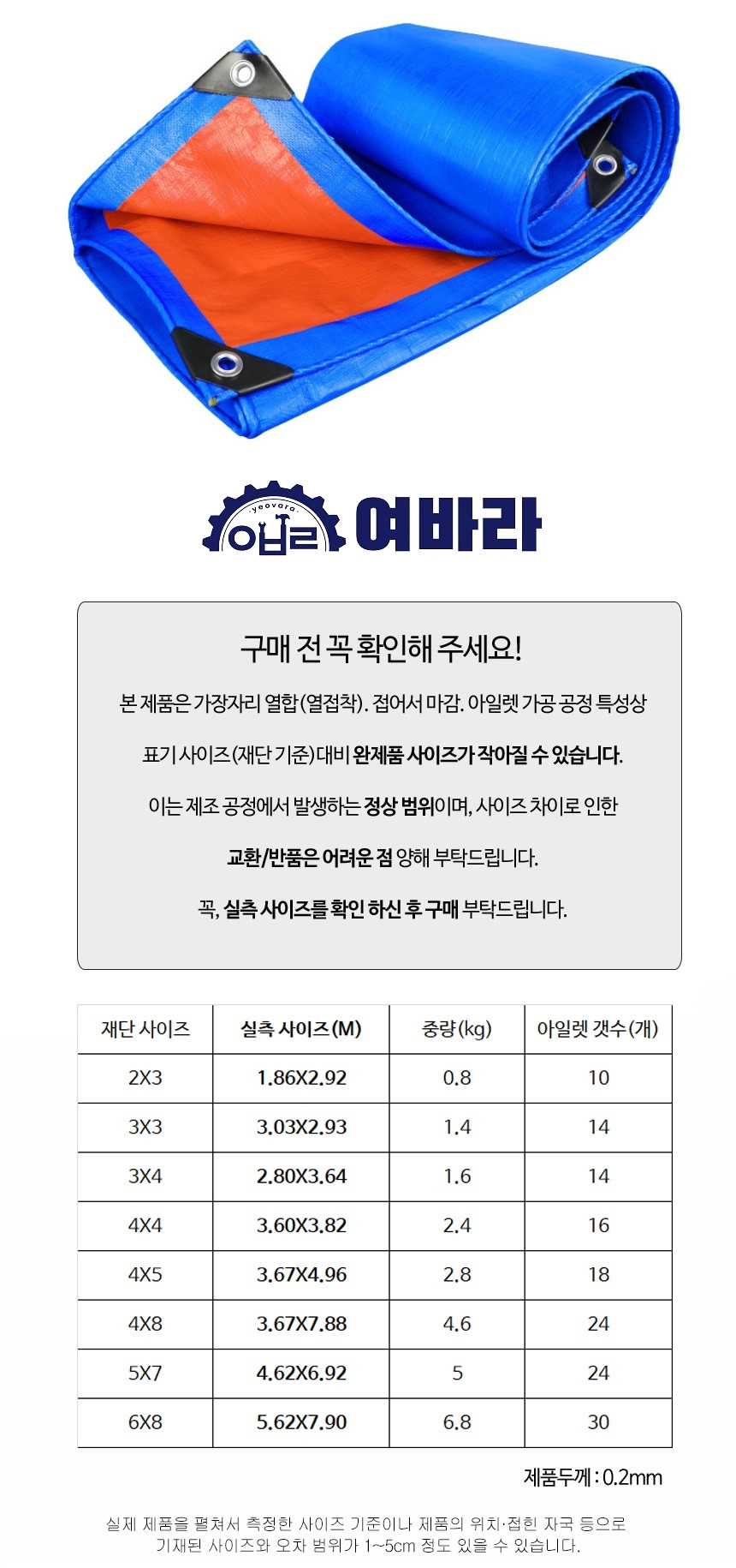 대형 그라운드시트 갑바 여바라 타포린 방수포 6 X 8